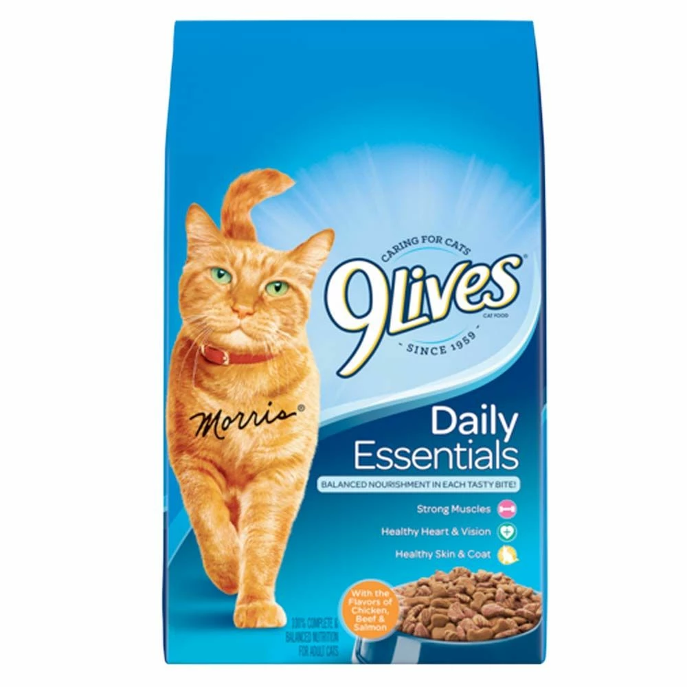 9Lives Daily Essentials Dry Cat Food features the flavors cats love: salmon, chicken, and beef. 100% complete and balanced nutrition they need and deserve. Healthy skin and coat–omega 3 fatty acids. Strong muscle growth–high quality protein. Healthy heart and clear vision–taurine. Specially formulated with an Advanced Nutrient System to meet the needs of cats in every life stage. Supports hairball control, healthy weight and metabolism. Easy litter box cleanup. Made with the delicious flavors of salmon, chicken and beef.
