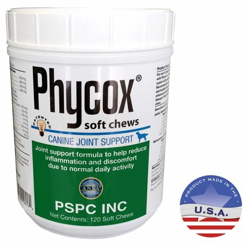 Phycox® Soft Chews Canine Joint Support provides superior joint support for your dog with a patented extract of blue-green algae ingredient, a natural source of phycocyanin. Phycocyanin is an extract from blue-green algae and is a revolutionary in the way reduces inflammation, a major cause of joint discomfort. In combination with glucosamine, MSM and our proprietary blend of antioxidants and other important minerals, Phycox® Soft Chews is a highly effective way to relieve your dog's joint discomfort. Made in USA.