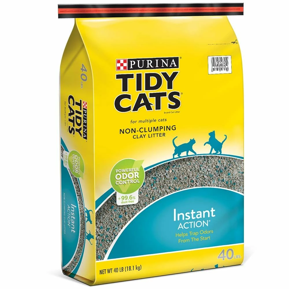 Tidy Cats Instant Action Non-Clumping Cat Litter for Multiple Cats has instant action, immediate odor control. It is especially formulated to reduce odors.
