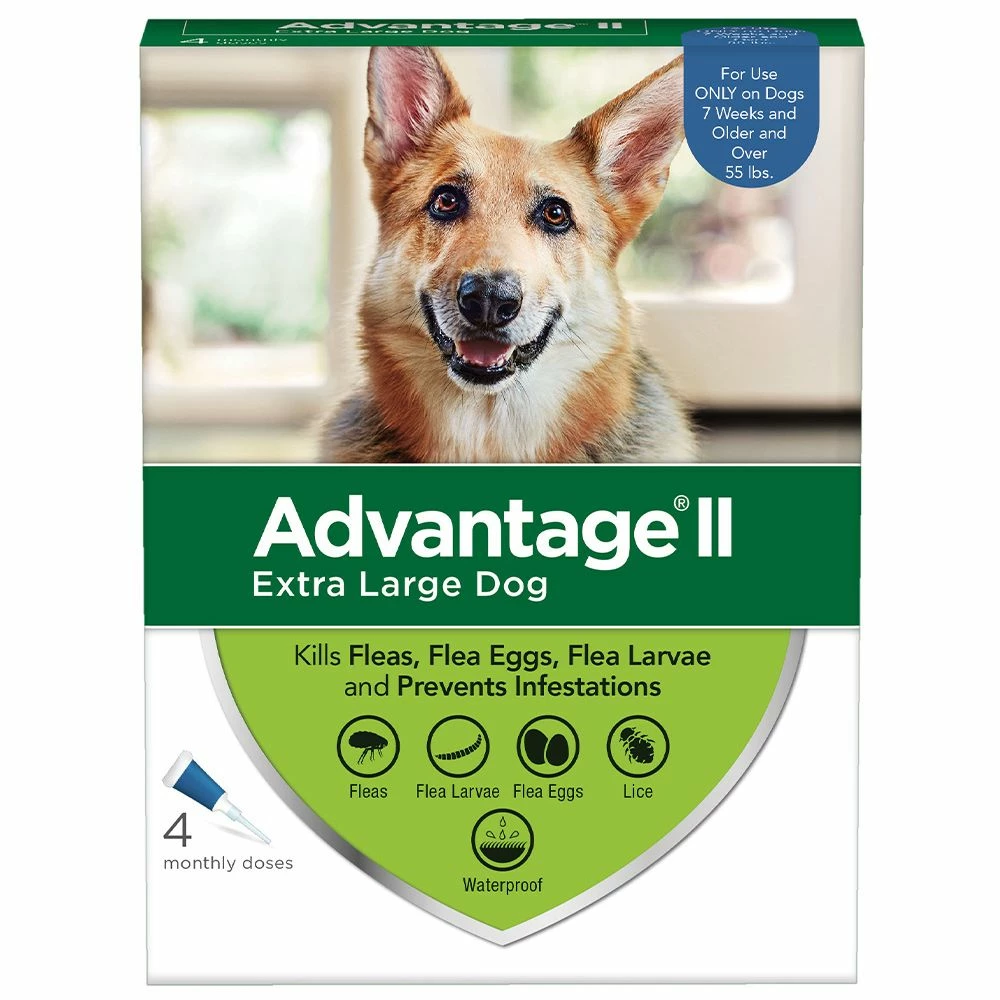 Advantage® II Topical Flea Treatment for Dogs is a once-a-month flea treatment. It kills multiple flea life stages and is waterproof (no need to reapply after swimming or a bath, for best results use a non-detergent based shampoo). Advantage® II for Dogs provides monthly protection from fleas. This treatment is convenient and easy to apply. Advantage® II controls existing flea infestations on your dog and prevents further infestations. It will kill fleas within 12 hours of application and kills reinfesting fleas within 2 hours. It is gentle enough for dogs and puppies 7 weeks and older. This flea treatment works through contact, so fleas don't have to bite to die.#html-body [data-pb-style="62160449AE4A7"]{justify-content: flex-start; display: flex; flex-direction: column; background-position: left top; background-size: cover; background-repeat: no-repeat; background-attachment: scroll; border-style: none; border-width: 1px; border-radius: 0px; margin: 0px 0px 10px; padding: 10px;}#html-body [data-pb-style="62160449AE4C7"]{border-style: none; border-width: 1px; border-radius: 0px; margin: 0px; padding: 0px;}