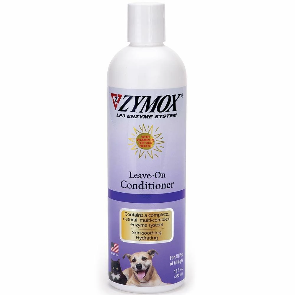 ZYMOX ®Leave-On Conditioner provides skin soothing conditioning of the coat and skin to calm itchy allergy skin. Formulated with the patented LP3 Enzyme System which blends a combination of protein, enzymes and Vitamin D3. ZYMOX Leave-On Conditioner is safe and gentle for all pets of all ages. Moisturizes and detangles. May be rinsed off, left on or applied full strength to areas needing extra attention. Features a pleasant fragrance. Dries non-greasy. Non-toxic.