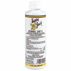Happy Jack Kennel Dip II concentrate is a water-based, environmentally friendly concentrate that provides 30-day residual control of fleas, ticks (Including deer ticks), lice, mange mites & stable flies. Can be used as a dip, sponge on, or premise spray. Kennel Dip II is effective & economical. Mix 1/2 oz. of Kennel Dip II with 1 gallon of water as a dip or 4 oz. per gallon of water as a premise spray.
