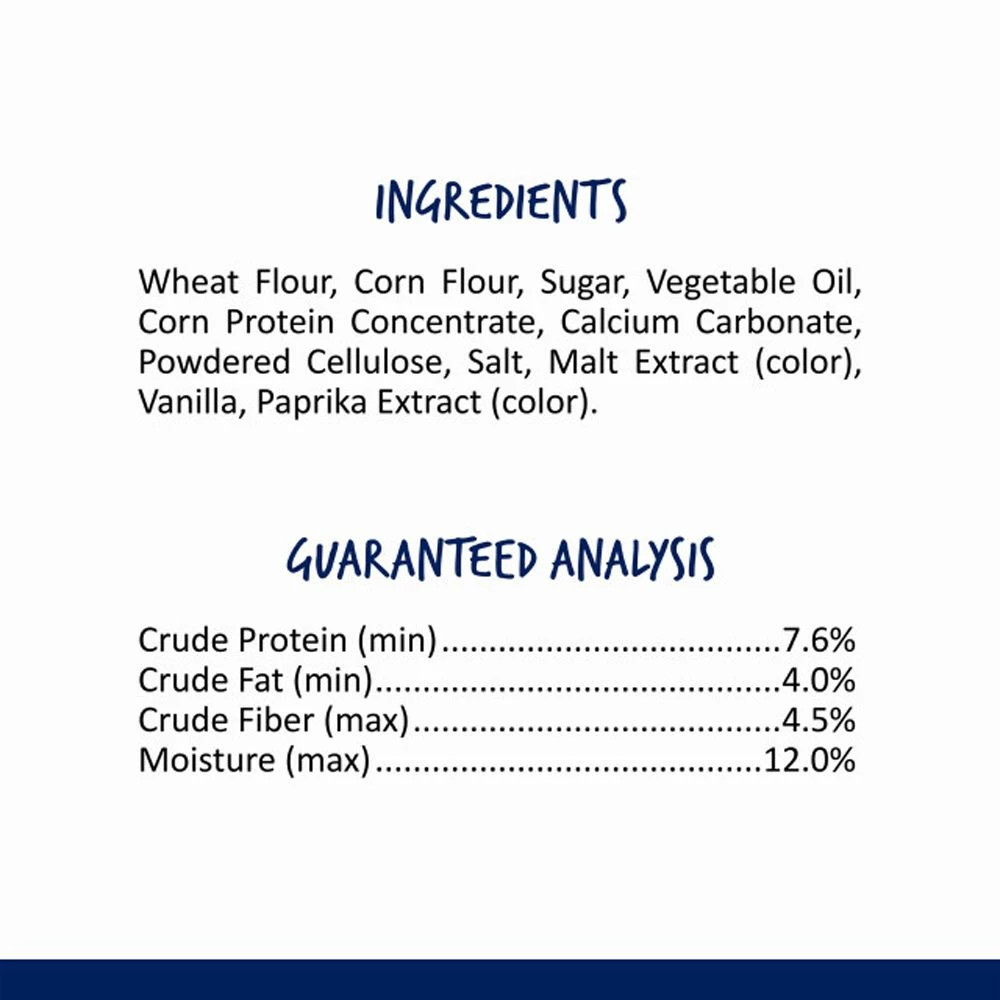 | Ingredients | Wheat Flour, Corn Flour, Sugar, Vegetable Oil, Corn Protein Concentrate, Calcium Carbonate, Powdered Cellulose, Sale, Malt Extract (color), Vanilla, Paprika Extract (color). |