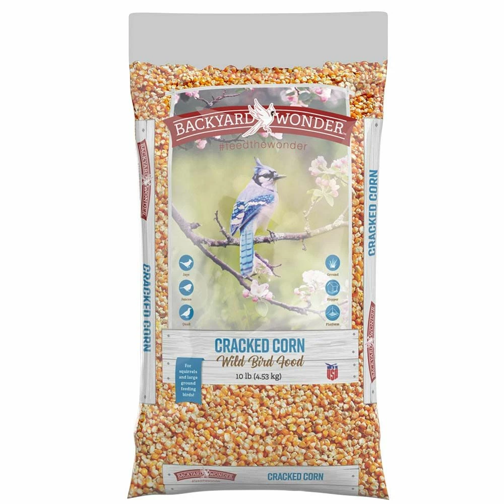 Backyard Wonder® Cracked Corn Wild Bird Food is a fully edible snack for birds like jays, juncos and quails as well as other backyard wildlife. It has no shells or hulls and is great for year round feeding. Place the feeder near trees or shrubs. Offer water for birds to drink. And it's all made with care right here in the USA.#html-body [data-pb-style="621604485FF6D"]{justify-content: flex-start; display: flex; flex-direction: column; background-position: left top; background-size: cover; background-repeat: no-repeat; background-attachment: scroll; border-style: none; border-width: 1px; border-radius: 0px; margin: 0px 0px 10px; padding: 10px;}#html-body [data-pb-style="621604485FF90"]{border-style: none; border-width: 1px; border-radius: 0px; margin: 0px; padding: 0px;}