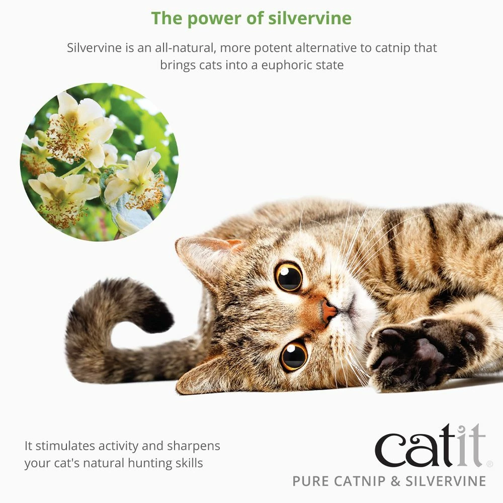 Silvervine is an all-natural, more potent alternative to catnip that brings cats into a euphoric state and sharpens their natural hunting skills and helps to relieve stress and anxiety.