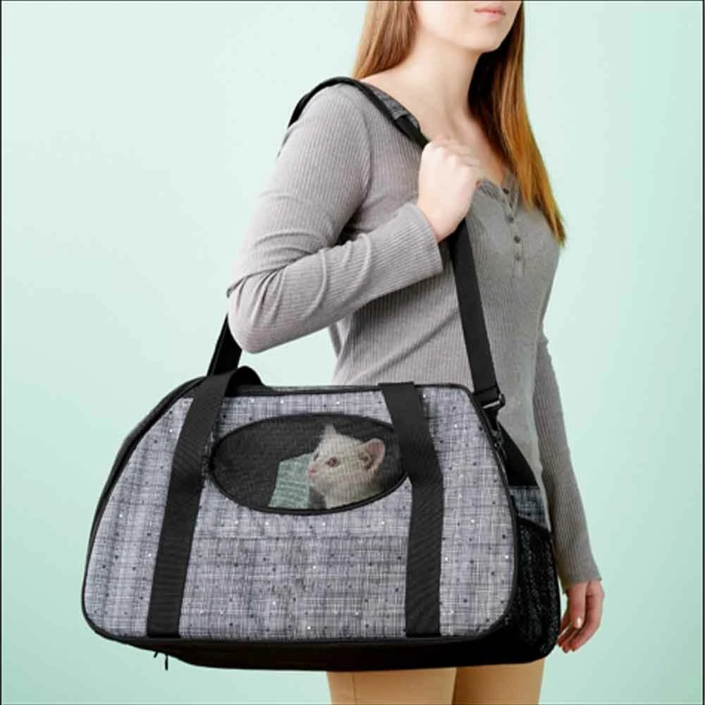 Make traveling with your pet easier and more comfortable for them with Gen7Pets® Carry-Me™ Pet Carrier. Whether you're traveling by car or by plane; the Carry-Me Pet Carrier is perfect for cats and small dogs and offers a number of features to keep them as safe and as comfortable as possible. Much easier to handle than rigid pet carriers; the Carry-Me Pet Carrier allows you to use the adjustable; padded shoulder strap or the rolled and padded carry handle to transport the carrier from place to place. The backside of the carrier features a convenient luggage strap for portability when navigating your way through an airport. Durable mesh windows on the sides and top of the carrier provides plenty of ventilation for your pet. The rear end of the carrier unzips all the way down to provide easy access to your pet; while the front end of the carrier only unzips halfway down for your pet to poke their head out if needed. Other convenient features include a zippered storage pocket for treats and waste bags; a mesh water bottle pouch; a Smart-Comfort Pad; an interior safety tether; and a car seatbelt strap for secure car travel. Make your pet's travel experience as safe and as comfortable as possible with the Carry-Me Pet Carrier. Meets most airline regulations on its side; but always check with your specific airline before travel.