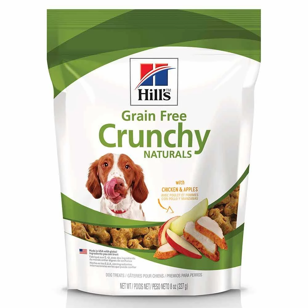 Hill's® Science Diet® Grain Free Crunchy Naturals with Chicken & Apples dog treats are delicious, natural and made from only the best ingredients. Every treat is grain free and made with high-quality chicken and real apples that will make your dog happy. Not artificially preserved or flavored. Feed as a snack as part of a feeding routine with Hill's dry and canned foods for healthy dogs. Recommended for normally active puppy (9+ weeks old), adult & mature adult dogs.