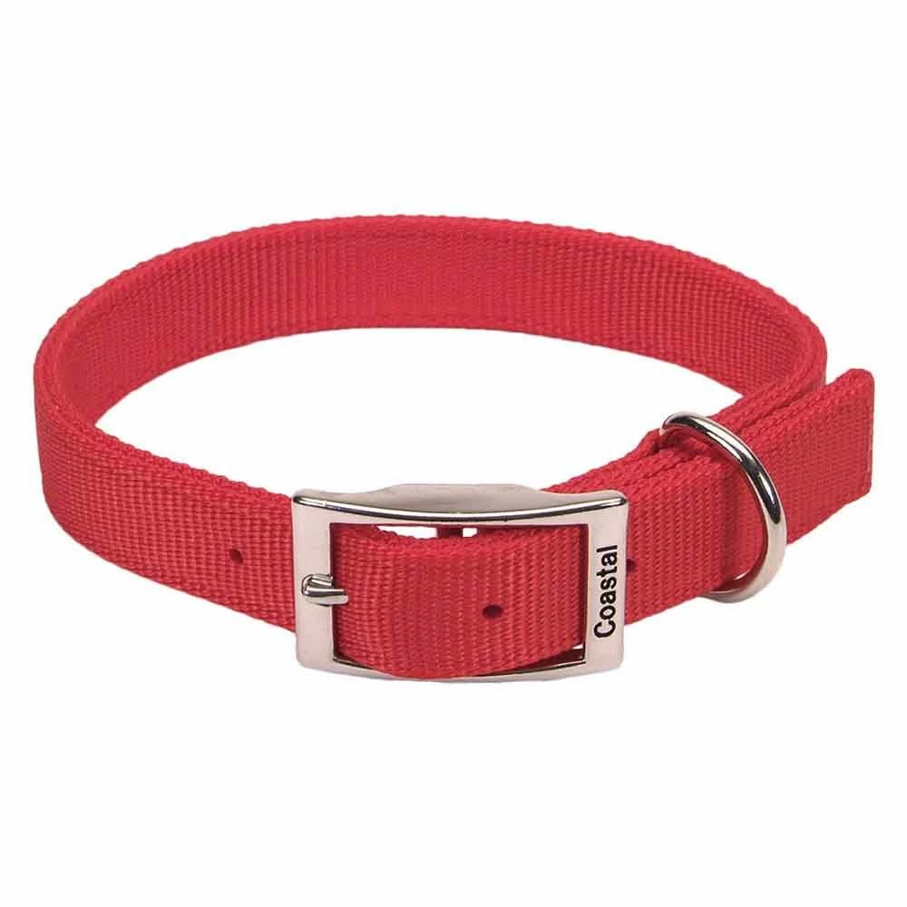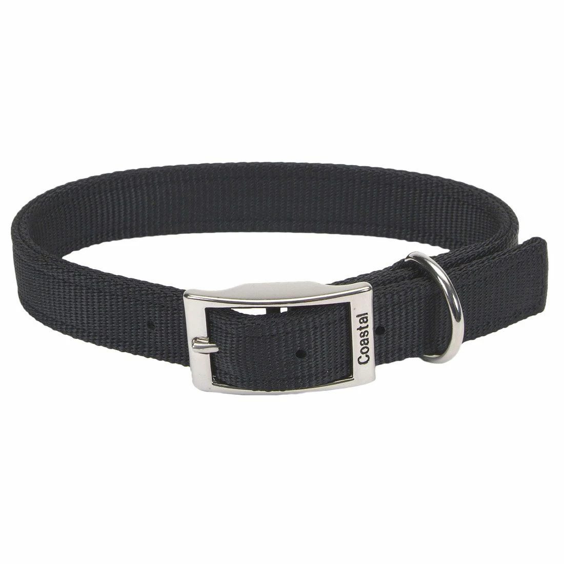 Coastal® Double-Ply Dog Collar is two layers of durable nylon are sewn together to give this dog collar extra strength. Perfect for large dogs, this collar is easy to use with no adjustments needed. It comes in 1 in. width and features a metal tongue buckle with four holes to easily secure. Plus, its D-ring pairs easily with ID tags and leashes. Choose from a variety of vibrant, fade-resistant colors and give your large dog a long-lasting collar!