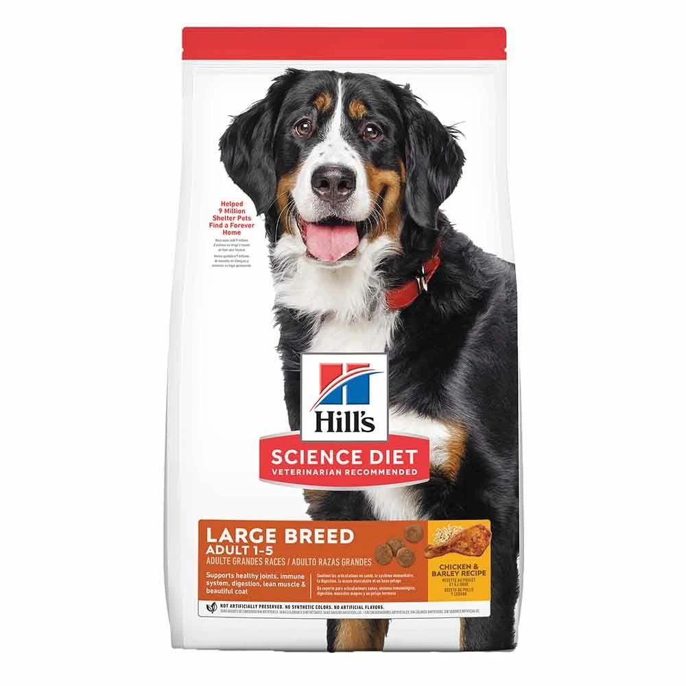 Hill's ® Science Diet ® Adult Large Breed Dog Food provides precisely balanced nutrition to maintain ideal body weight and healthy joints. It is enriched with L-Carnitine and natural source Glucosamine Chondroitin Sulfate for ideal body composition and joint support. It is made with high quality ingredients which makes it easy to digest. Recommended for large breed adult dogs 1 — 5 years of age with an ideal weight of 55 — 110 lbs and giant breeds 1 — 4 years of age with an ideal weight of 110+. Not recommended for puppies, pregnant or nursing dogs.