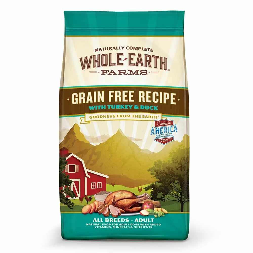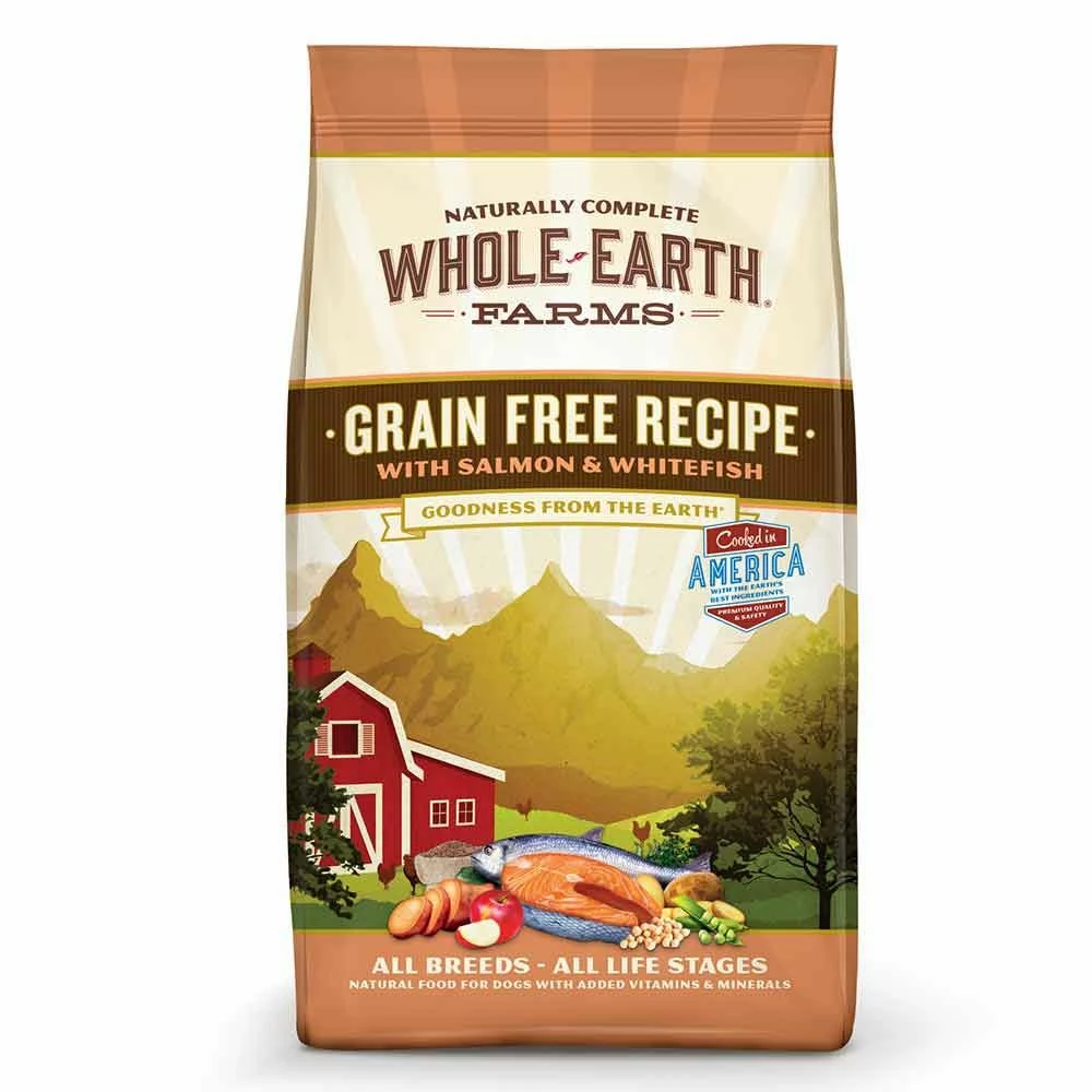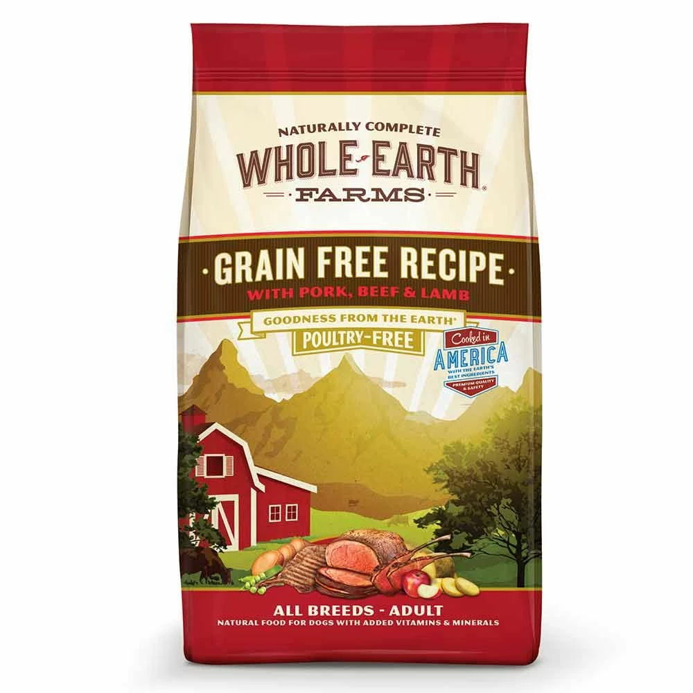Merrick Whole Earth Farms Grain Free Dry Dog Food is a wholesome and natural dry food for dogs. It includes apples, sweet potatoes and flaxseed for complete and balanced nutrition that’s paw-fect for sensitive stomachs. This grain-free dry dog food includes added vitamins, minerals and nutrients to support healthy digestion, reduce shedding, promote a shiny coat and encourage strong nails and healthy skin. It’s crafted without any grains, corn, wheat, soy, poultry by-products, artificial colors, flavors or preservatives.