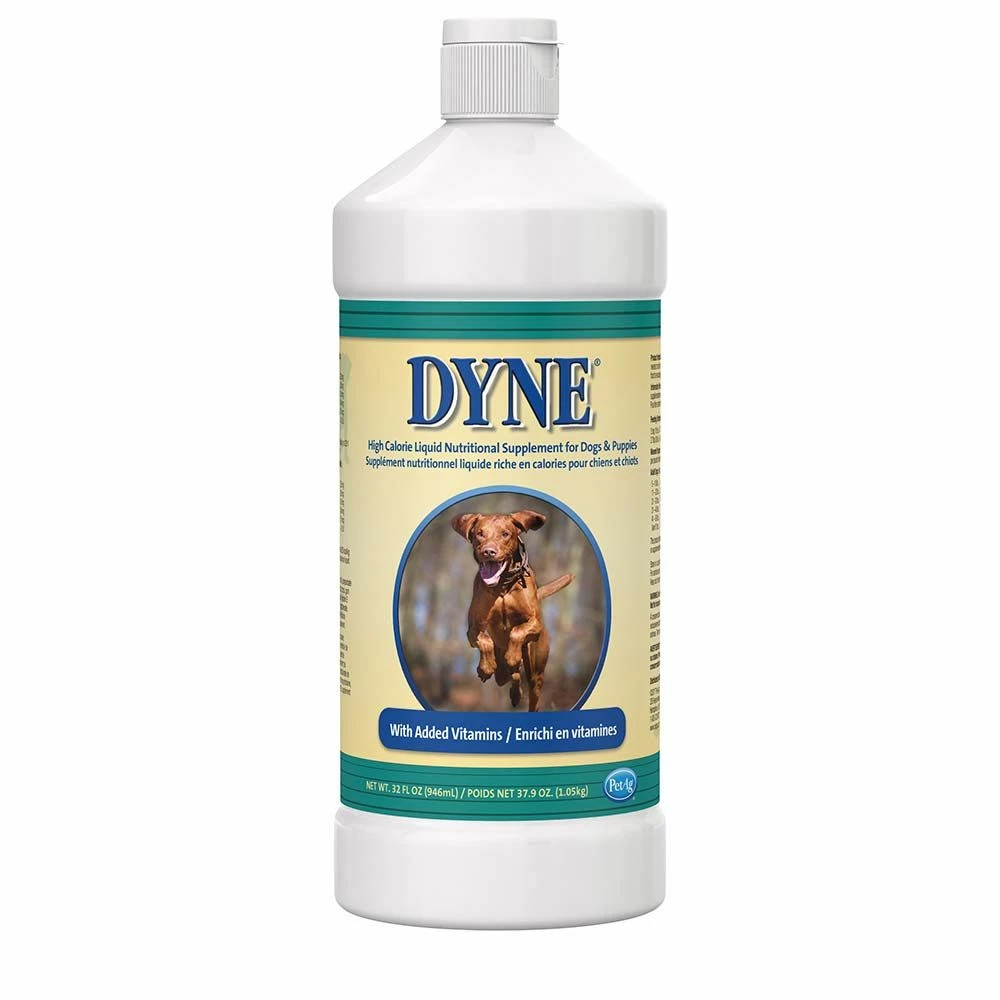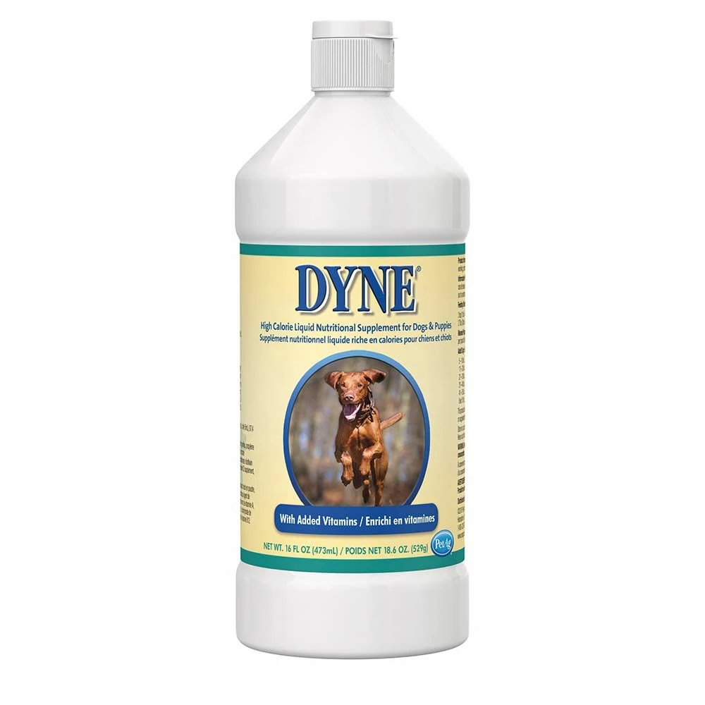 Dyne® boosts calorie intake in a minimal volume to support weight gain, provide energy and promote overall health. Specially formulated for dogs and puppies, this easy-to-feed gel liquid delivers 174 calories per fluid ounce. Dyne provides extra nutrition for pets that need it most, including puppies, pregnant and nursing moms, performance and working dogs, dogs recovering from stress or illness, and picky eaters.