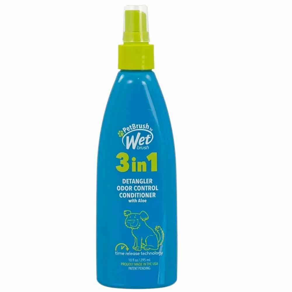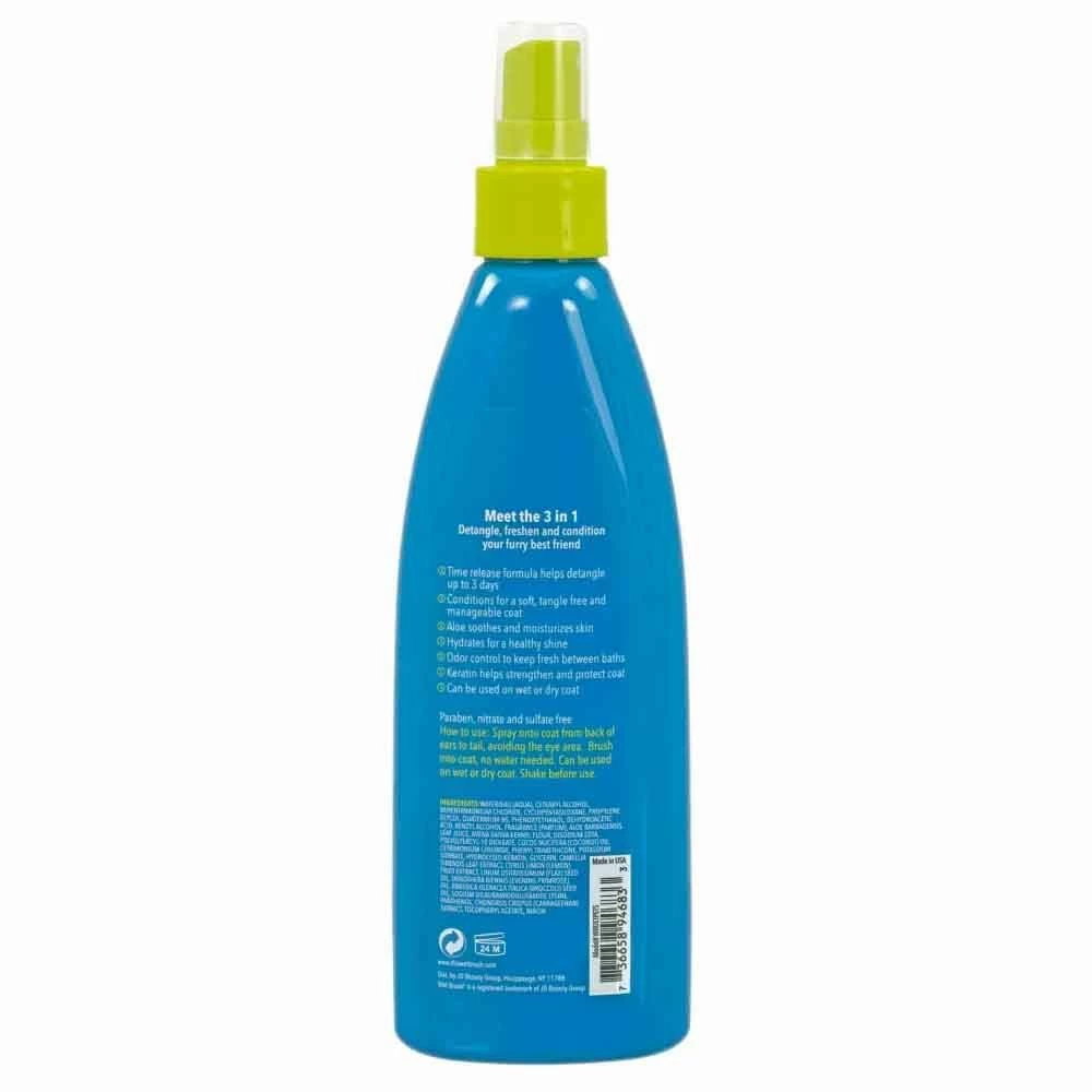 Pet Brush By Wet Brush 3-in-1 Detangling Spray is a time release formula that both detangles and provides odor control. It conditions for manageability while providing moisture for healthy skin and a shiny coat. It is paraben, nitrate and sulfate free.