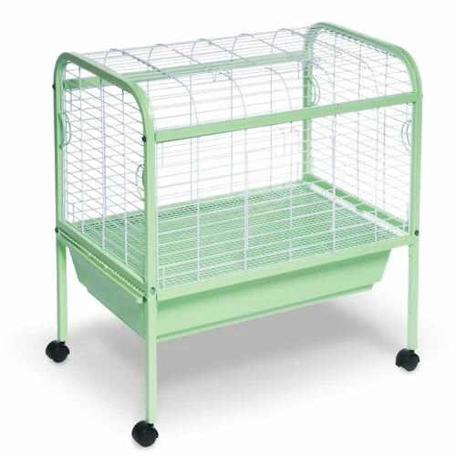 Prevue Pet Animal Cage with Stand is great for rabbits & guinea pigs and can also be used as a breeder cage for puppies, kittens, and other animals. The heavy-duty plastic pan is supported along the length of the cage for additional stability and can act as a urine guard if the cage is used without the bottom grille. It features roller casters, pull out pan and grill along with top and front openings for easy cleaning.
