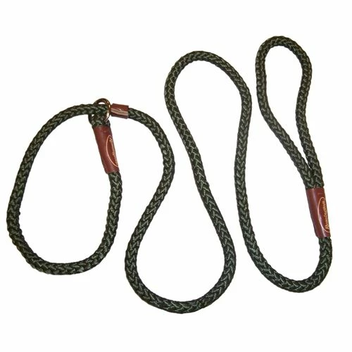 Remington Rope Slip Leash is made of soft, braided nylon with leather trim. The flexibility of Remington rope leashes makes them easy to fold for carrying or storage. The slip collar style leash, recommended by trainers, allows for quick, yet gentle correction and has a leather slide that adjusts the collar to fit any size neck. The slip leash is a great tool for field trials and crate transfer.