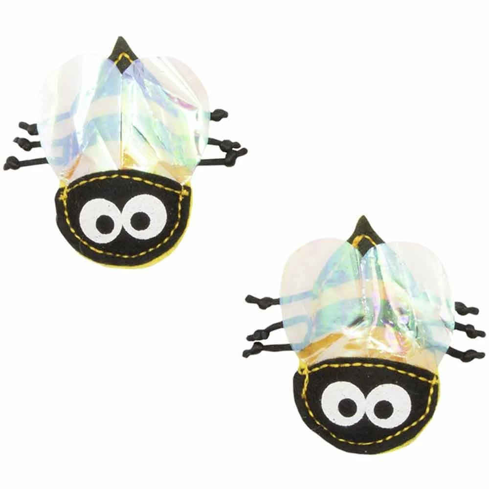 Kitty City Busy Bees Cat Toy has shiny mylar wings that create fun crinkle sounds. This set has a fabric body with dangly legs.