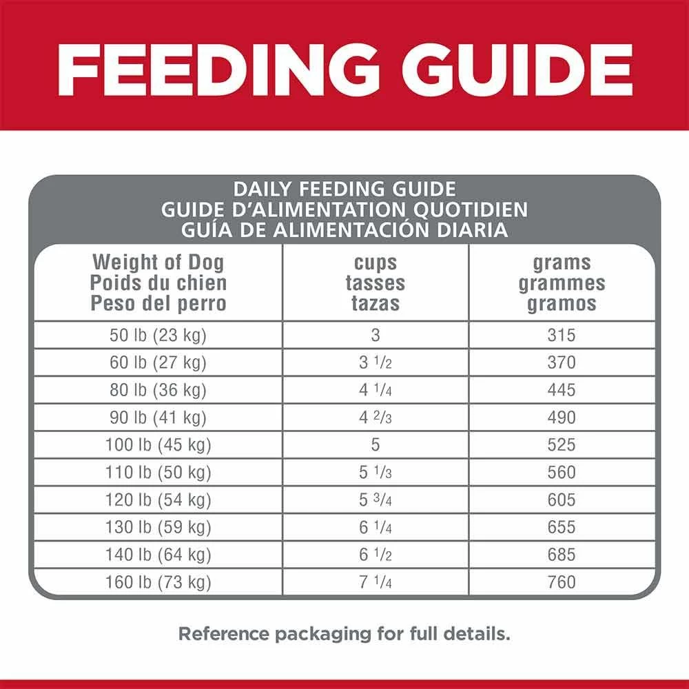 | Feeding Directions | Adjust feeding amounts as necessary to maintain optimal weight. If you are unsure, ask your veterinarian. See chart. |