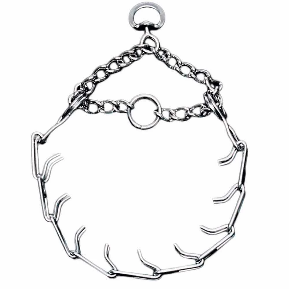 The Titan Training Prong Collar is electric welded and chrome plated for maximum strength and durability. It will not tarnish, rust or break. Featuring a link closure style, prong links unfasten for easy collar placement and removal. Symmetrical prong placement provides natural contact for optimal communication. Great for walking strong pullers, large dogs, obedience training and behavior correction.