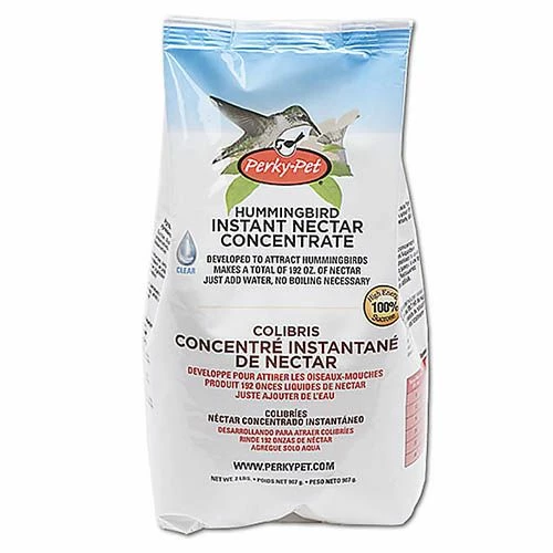 Perky-Pet® Clear Powder Hummingbird Nectar Concentrate is an easy to use powdered concentrate made of 100% sucrose (an essential energy source for hummingbirds). Simply mix with water- no boiling required.