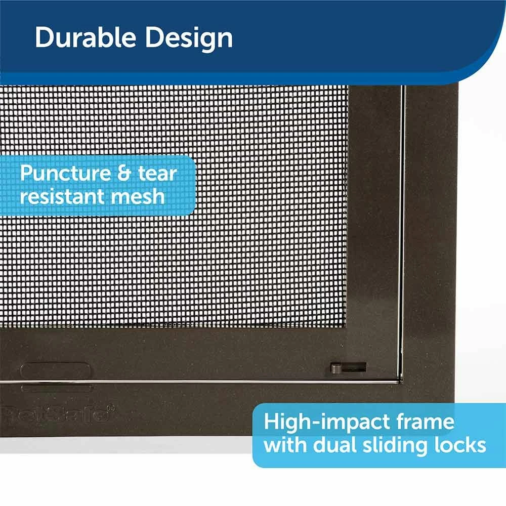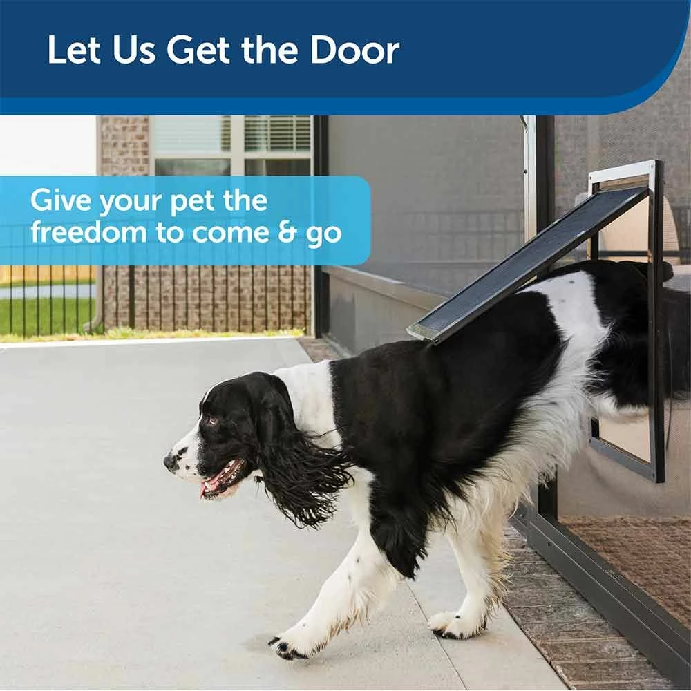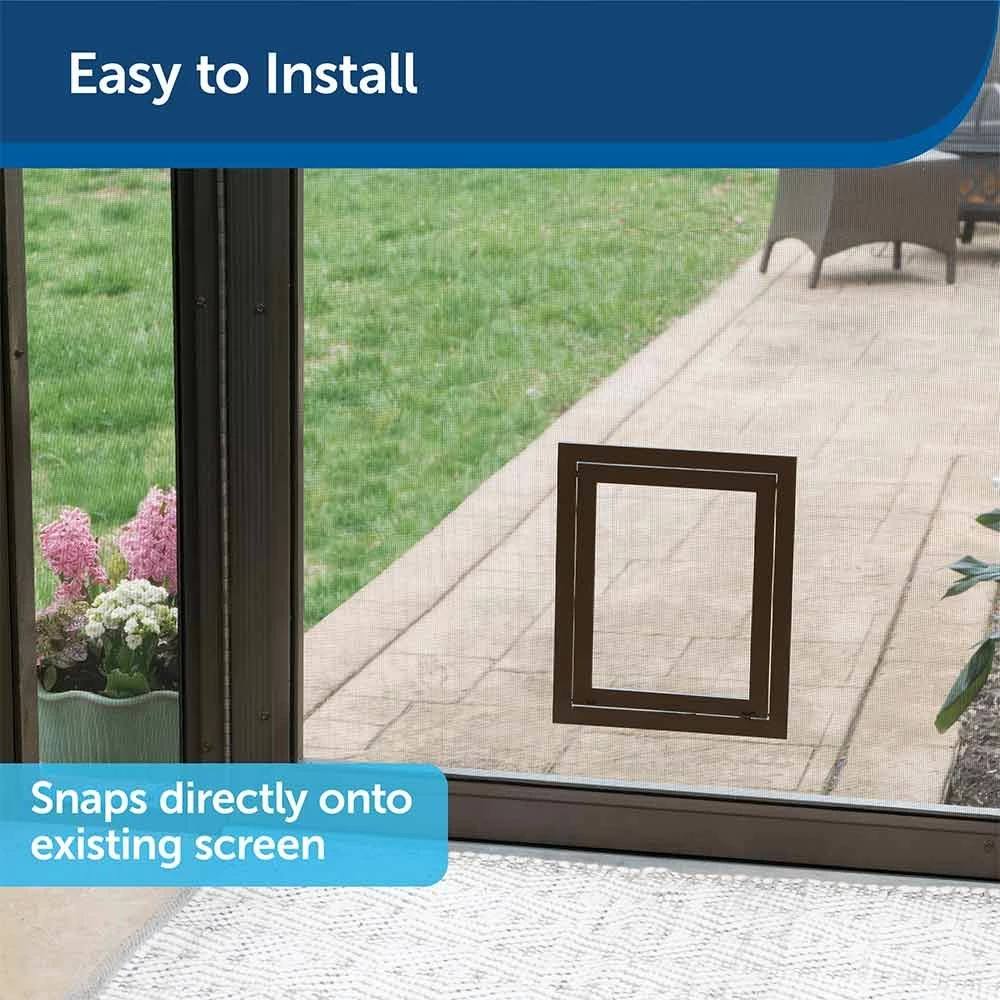 Let your pets out and the breeze in. The PetSafe® Pet Screen Door gives your cats and dogs freedom to go in or out without asking for your help to open the door—perfect for potty breaks or play time. The high-impact plastic frame surrounds a durable mesh that is puncture and tear-resistant to stand up to frequent use from multiple pets. The door snaps directly into your existing screen door, window or porch screen for quick and easy installation, and blends perfectly with your existing screen. Works with most metal or vinyl coated fiber screens on storm doors, windows and porches. PetSafe® brand is here to help you and your pet live happy together™.