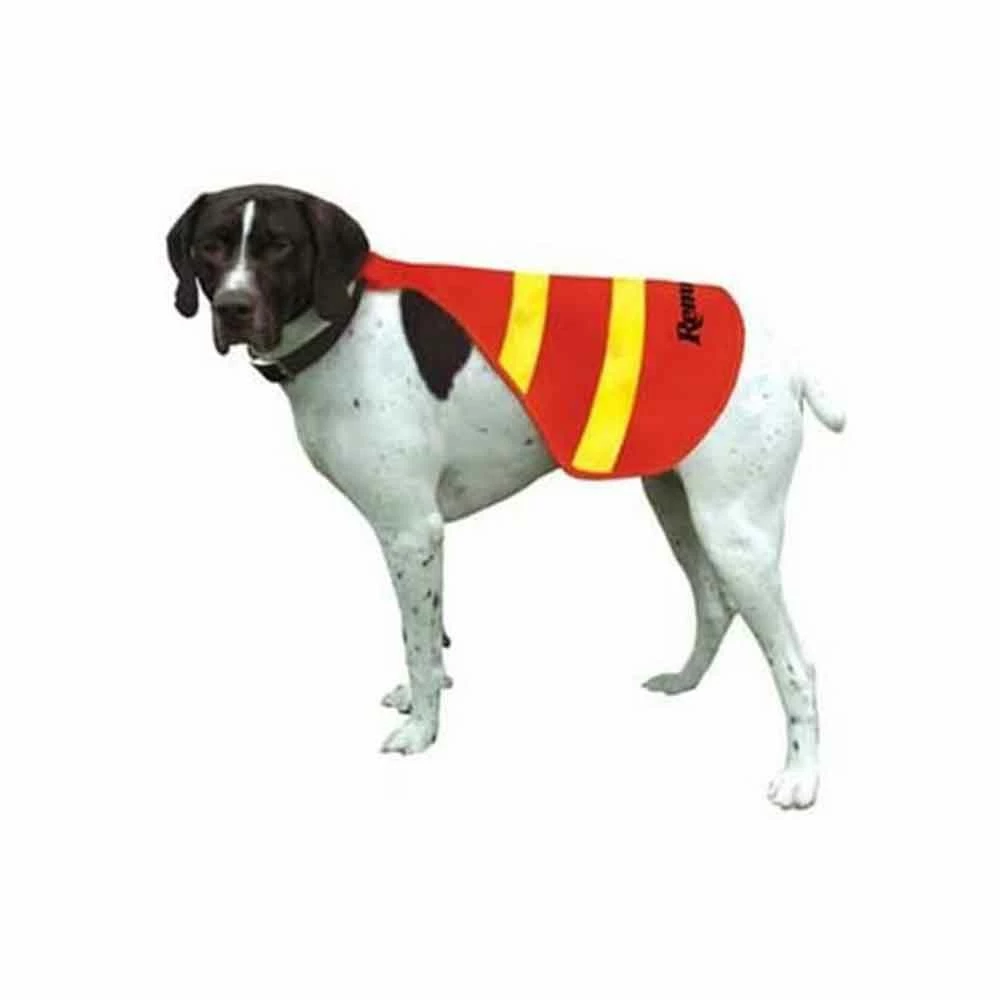 Remington Orange Yellow Safety Vest for Dogs provides maximum outside visbility in the day and night. It features reflective strips that reflect oncoming light at night. The adjustable design and lightweight material allow for a comofrtable fit and non-restrictive movement. It is water resistant.