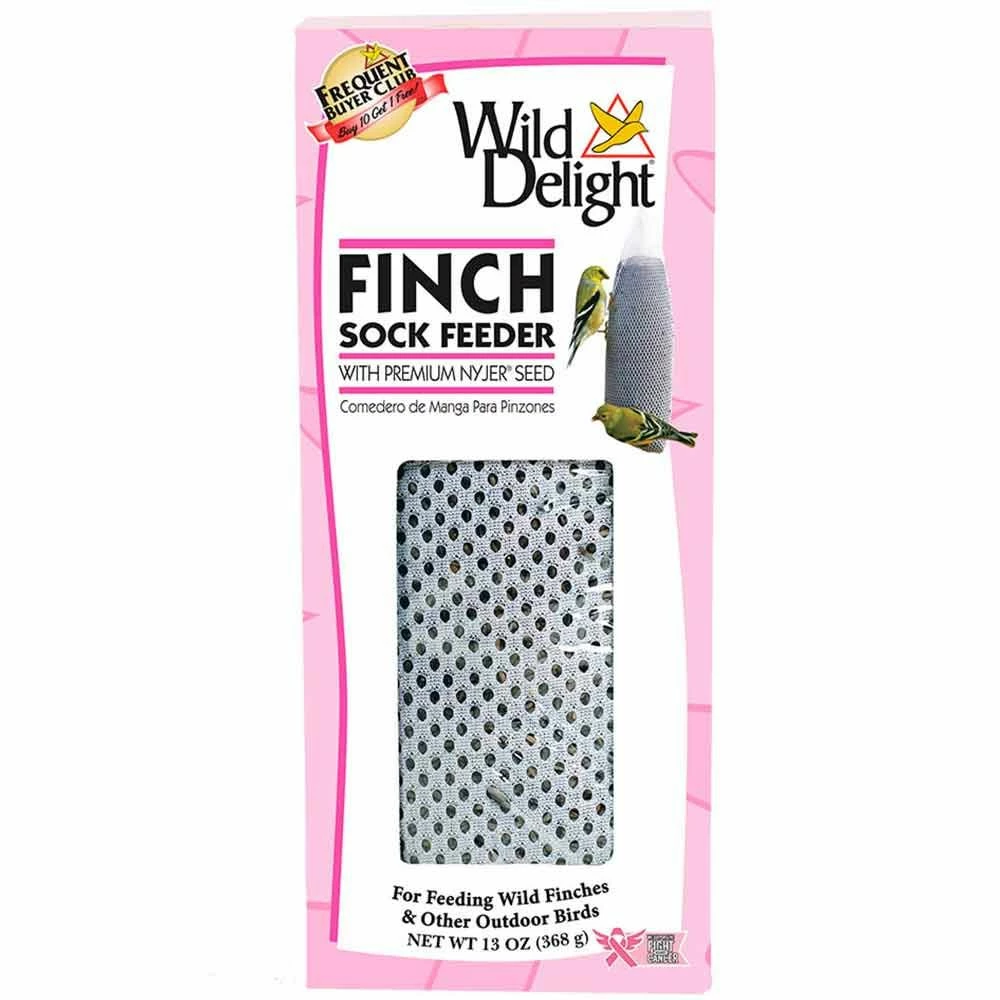 Wild Delight Finch Sock Feeder contains only the finest premium grade Nyjer seed, an oil seed preferred by finches and other birds. Hang refillable Wild Delight Finch Sock Feeder from tree limb, hook or other hanging mechanism. Finches will cling to the mesh sock and eat. Keep clean, fresh water available. Feed all year long.