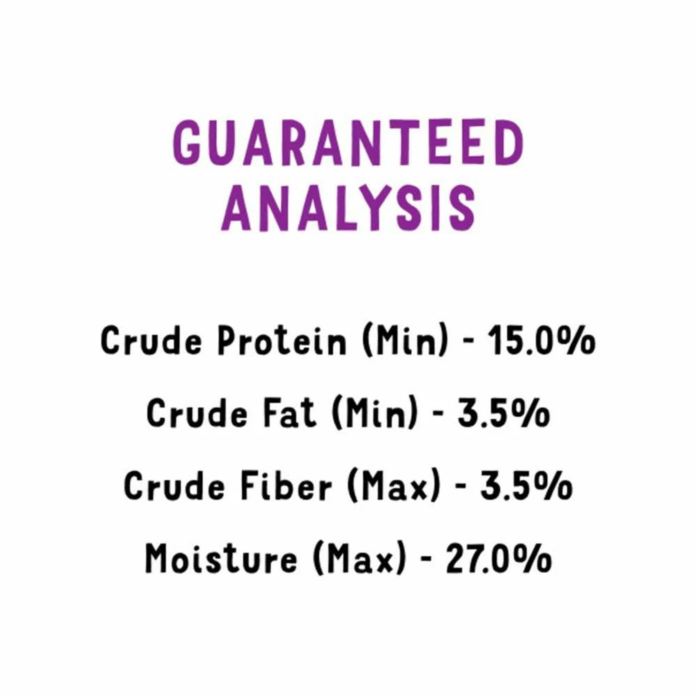 | Guaranteed Analysis | Crude Protein min. 15%, Crude Fat min. 3.5%, Crude Fiber max. 3.5%, Moisture max. 27% |
