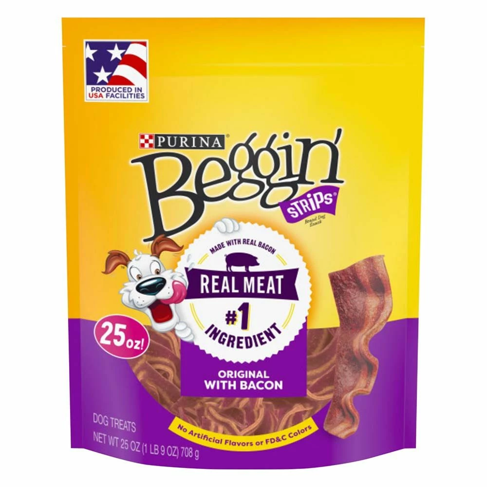 Purina Beggin' Strips Original with Bacon Dog Treat is the strip that started it all! Meat-crazed canines won’t believe their noses when they get a whiff of these bacony, mouthwatering dog treats made with real meat as the #1 ingredient. Each meaty bite smells like sizzlin’ bacon, taste like savory bacon, heck it’s even made with real bacon. And best of all, every Beggin’ Strip is proudly produced right here in USA facilities.