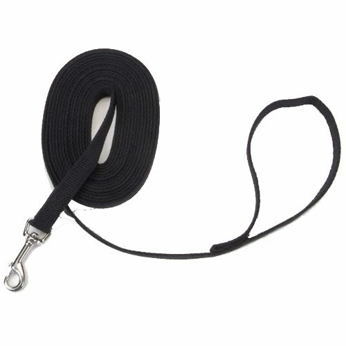 Train your dog safely and effectively with the Train Right!® Cotton Web Dog Training Leash! This training leash is recommended by professional trainers due to its strength and comfort. Made from 100% cotton, this leash is perfect for obedience and distance training, walking and general exercise. The swivel-style bolt snap adds an extra level of safety by preventing tangles during use. If you want to teach your dog to obey recall, stay, fetch and more then use the leash recommended by the pros!