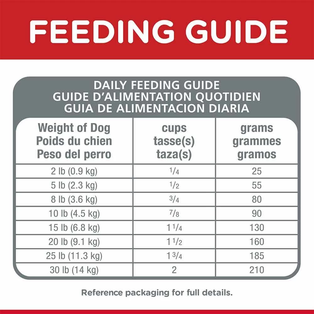 Hill's® Science Diet® Small Paws™ Adult Dry Dog Food is tailored nutrition for the unique needs of Small & Mini dogs’ during the prime of their life. Delicious lamb flavor for those that prefer variety and specially made with nibble size kibble. Specially made with nibble size kibble is made with easy-to-digest ingredients for healthy digestion. Nourishing Omega-6 and Vitamin E blend is for healthy skin and luxurious coat. High-quality protein is for lean muscles. Small Paw™ food contains our special small and mini antioxidant blend for lifelong immune support. Recommended for adult dogs 1-6 years of age that weigh up to 25 pounds when full grown. Not recommended for puppies, or adult dogs pregnant or nursing dogs.