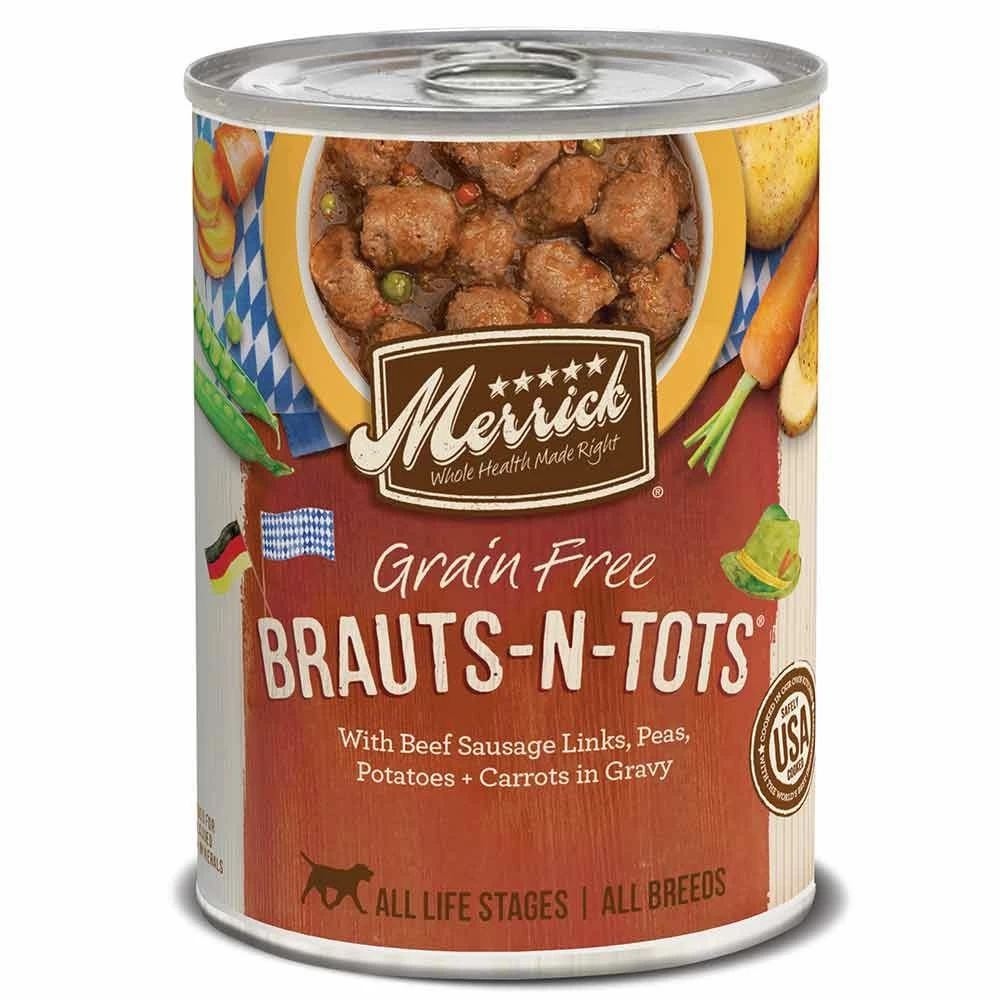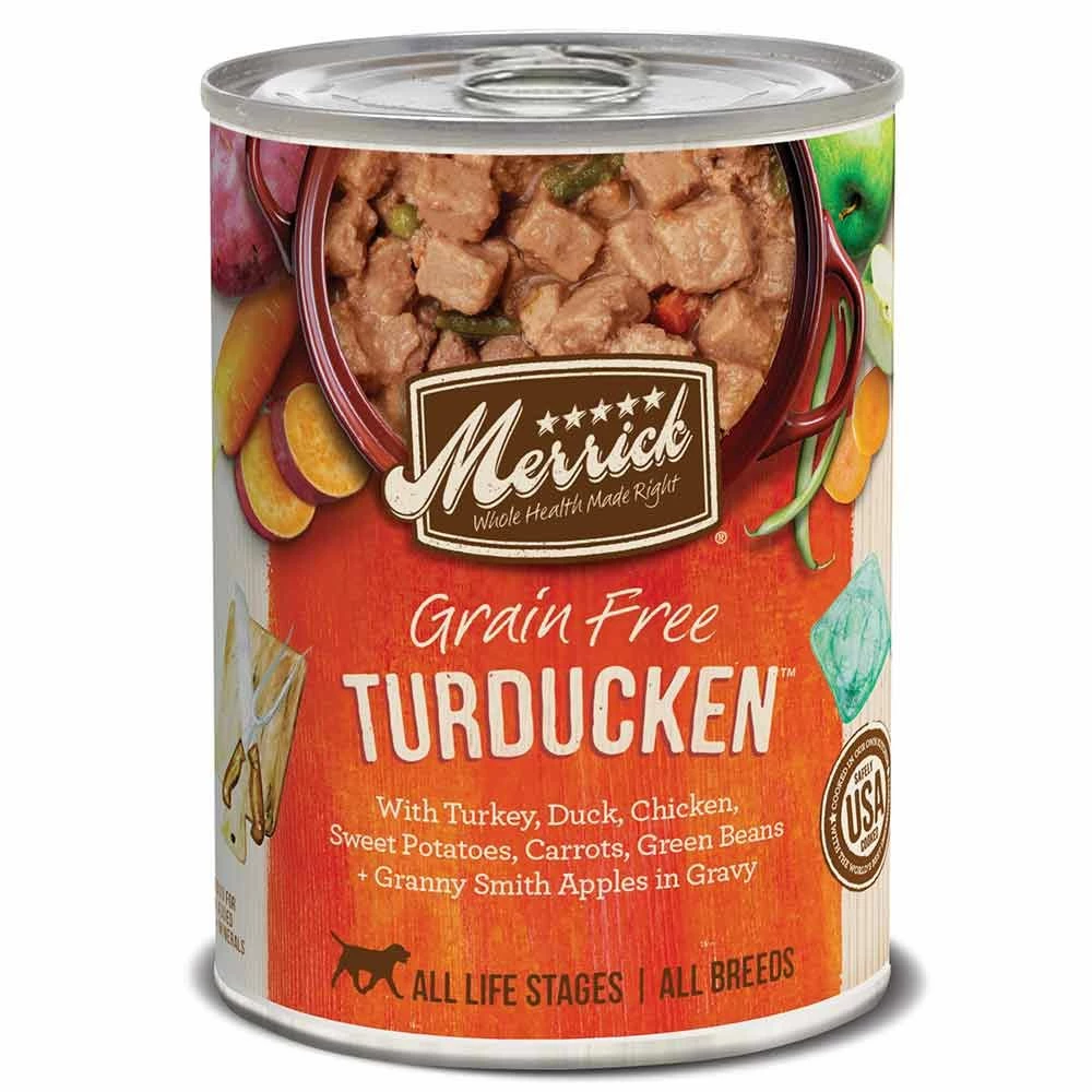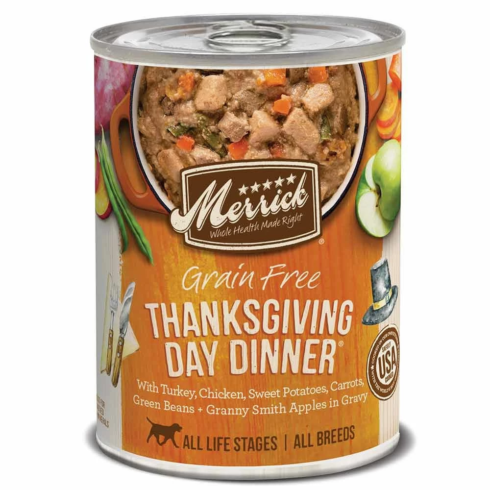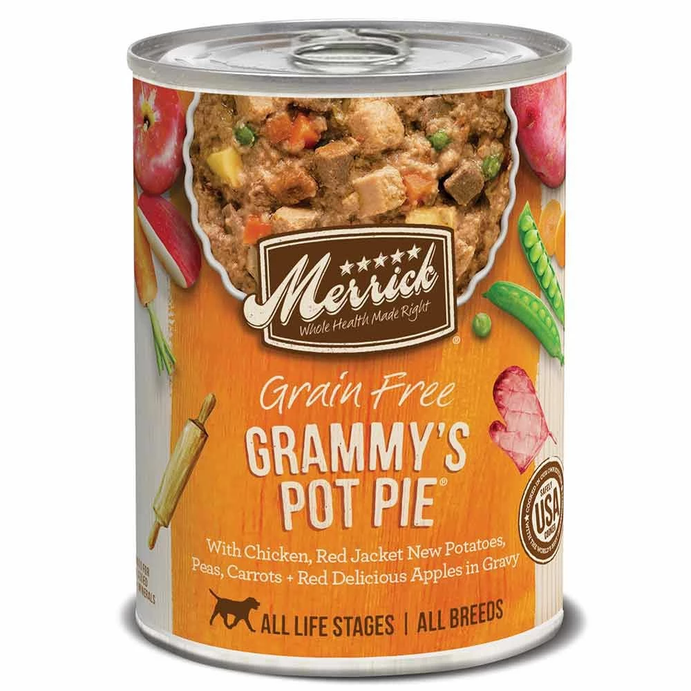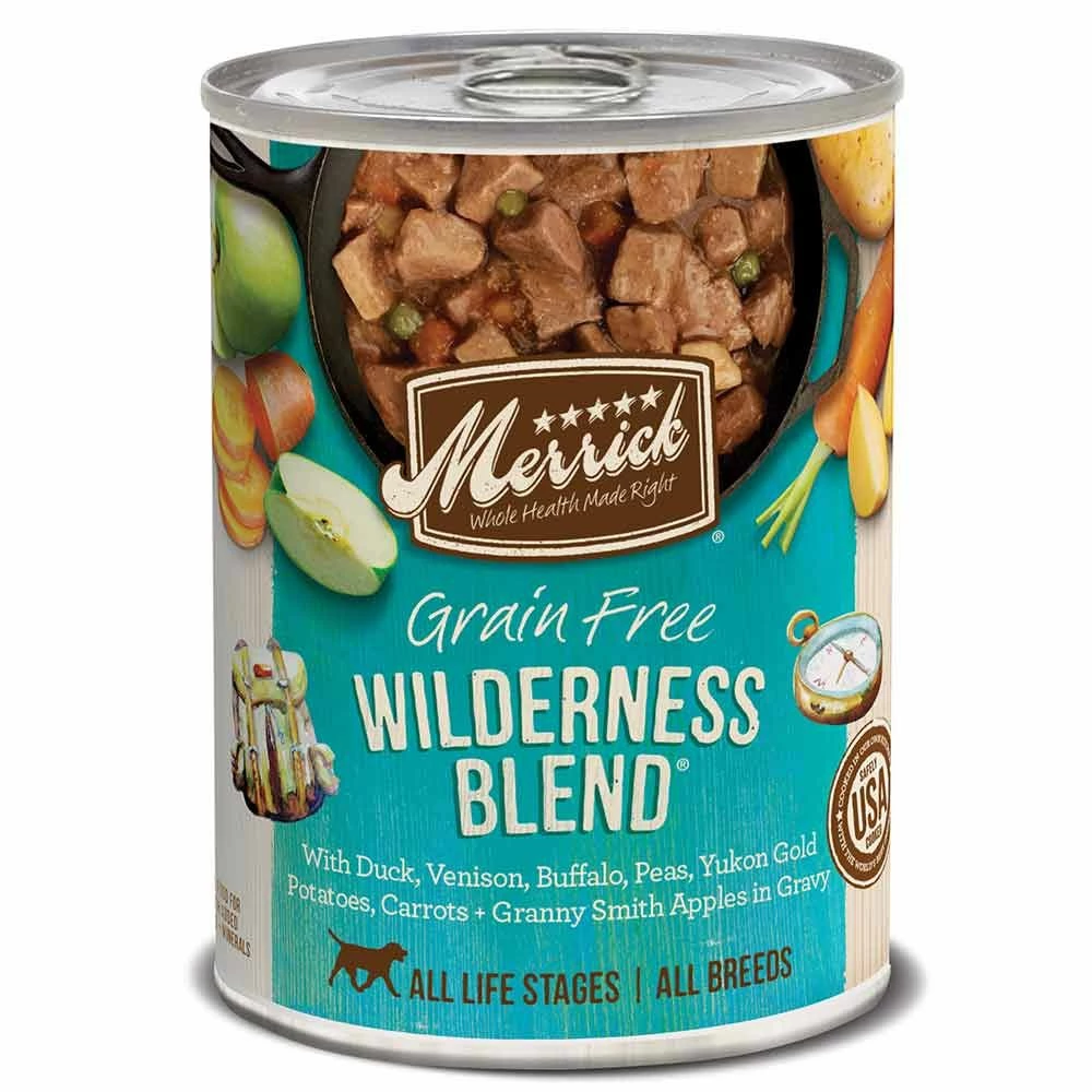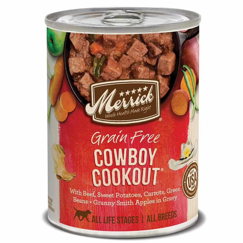 Merrick Grain Free Wet Dog Food features real meat or poultry as the first ingredient plus a balance of quality fruits and vegetables, crafted one batch at a time for wholesome, balanced nutrition. There are no artificial colors, flavors, preservatives or by-products. The savory broth adds flavor and moisture to a dog's diet. Merrick sources all ingredients from farmers they know and trust. All Merrick recipes are crafted in our Hereford, TX kitchen and cooked in the USA, in facilities that uphold strict FDA guidelines.