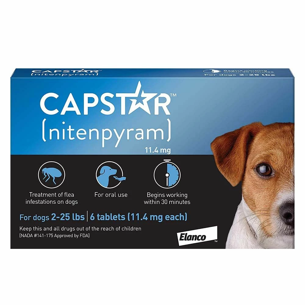 Capstar Flea Treatment tablets is a fast-acting flea treatment for dogs and cats, starting to work within 30 minutes. A single dose of Capstar will kill 90% of adult fleas within 4 hours on dogs and 6 hours on cats. Pets may temporarily scratch as result of the fleas dying. Capstar (nitenpyram) 11.4 mg is for puppies, dogs, kittens and cats 4 weeks of age and older and over 2 lbs. of body weight. Nitenpyram the active ingredient in Capstar is an insecticide that interferes with nerve transmission in the fleas. Capstar may be used along with monthly or longer-lasting flea preventative medications to address a flea infestation. It can also be used together with other pet medications such as hearworm preventatives, corticosteroids, antibiotics, vaccines, deworming medications and shampoos. If you are unsure contact your vet.