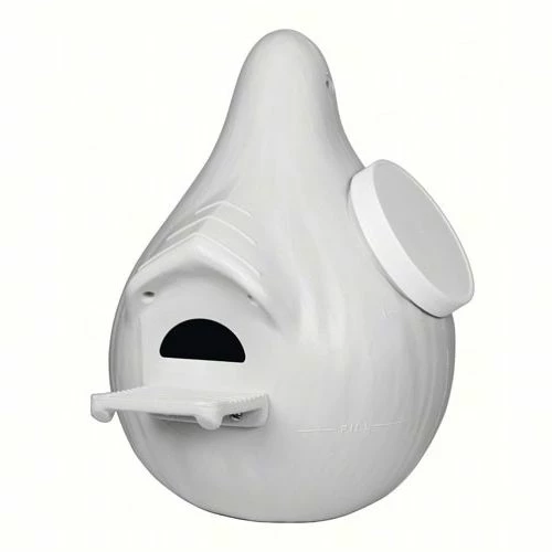 Songbird Essentials Purple Martin Excluder Ultimate Gourd offers two patented entrance holes and the crescent to exclude the European Starling from nesting. The closure cap is a necessity for doing nest inspections. The two center line hole punches on the gourd recommends 5/8 inch distance from the porch to the bottom of the entrance hole, however the porches may be attached at different levels at the landlord's discretion. External owl and hawk guards may be purchased as an accessory item. All excluder entrances work well for discouraging the European Starling.