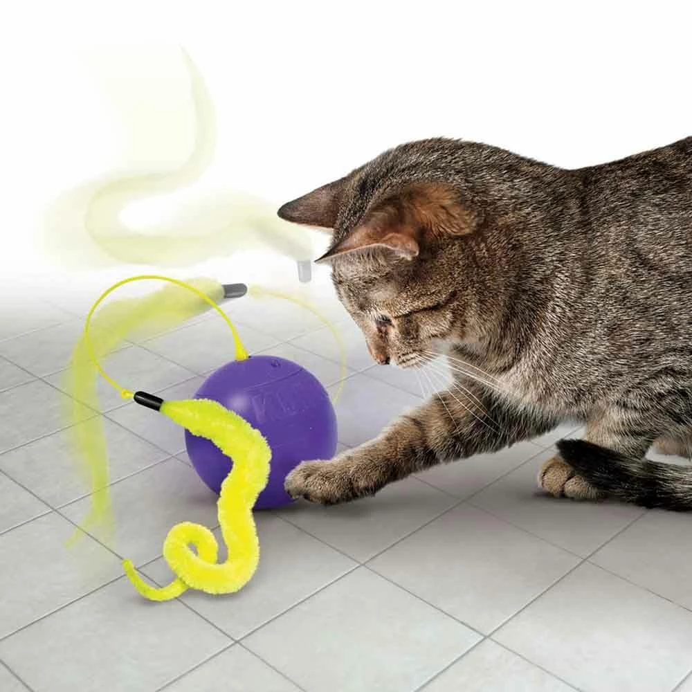 KONG Purrsuit Whirlwind entices a cat’s chase and capture play by unpredictably spinning itself across hard surfaces while actively twitching its long tail. This irresistible invitation sparks a cats’ stalk and pounce instincts for extended bouts of solo fun. Uniquely designed to bump out from corners this toy also features an auto timer that stops the movement after 15 minutes. Batteries included.