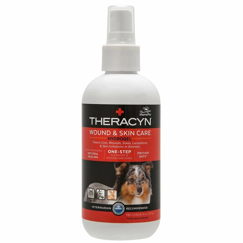 | Directions For Use | Shake well. Remove excess hair from affected area. Saturate the area with Theracynโข.ย If dressing is required, saturate dressing with Theracyn at each change. Repeat 2-4 times per day until wound is healed or directed by the vet. No rinsing. |