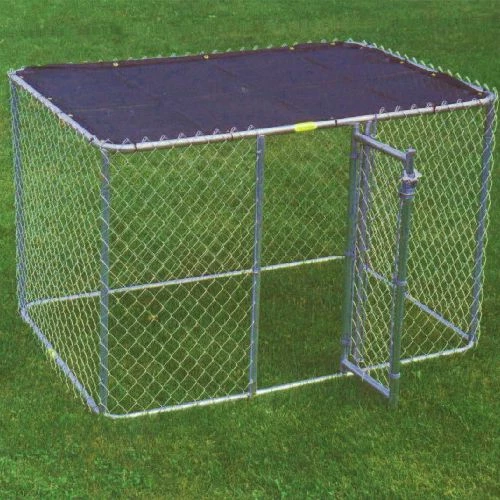 Stephens Pipe & Steel Shadblock Shade Top for Kennels is a polypropylene Mesh tarp shade cover and helps with rain but is mesh so rain will slowly permeate and drip thru. Attach to the kennel with zip ties included thru each of the grommets.