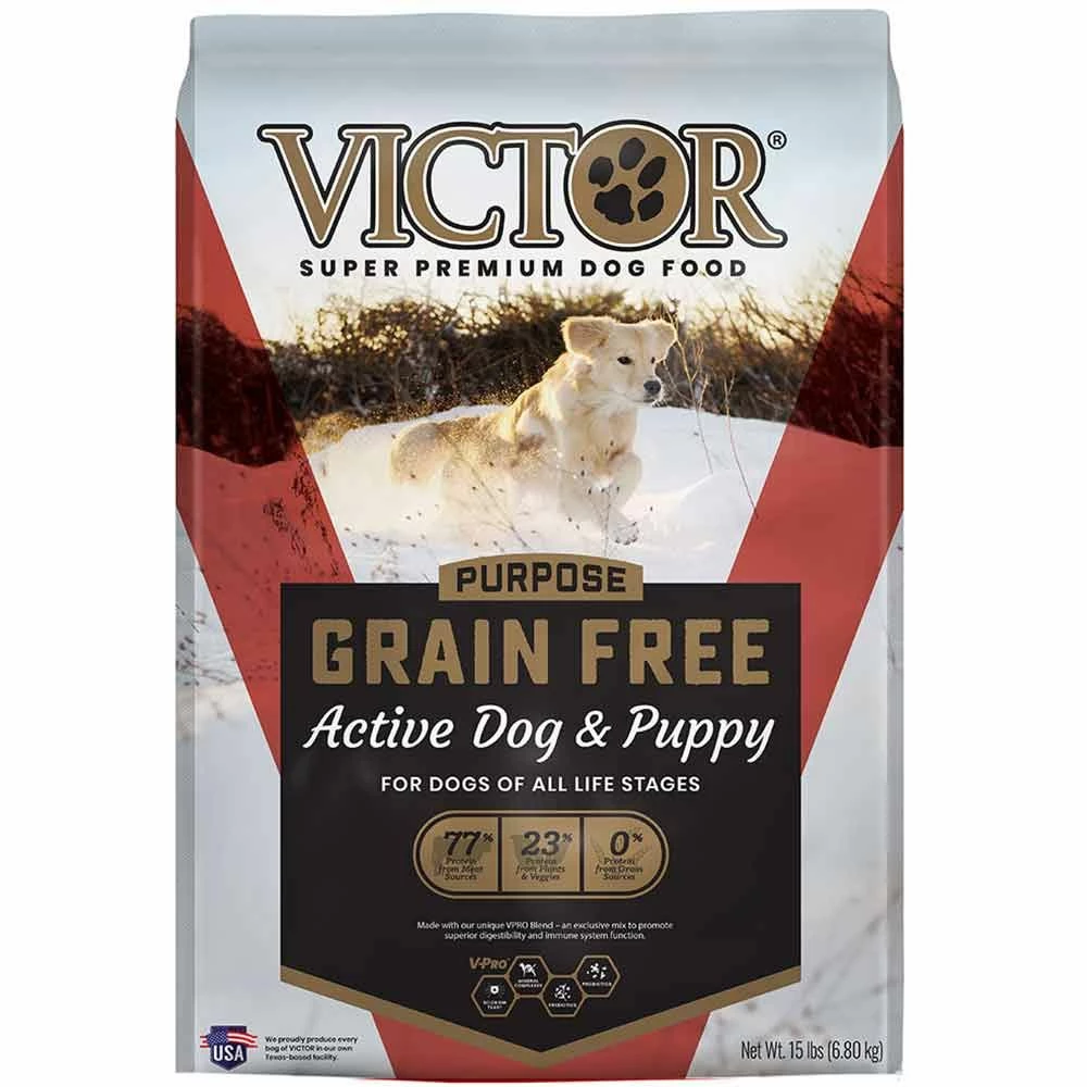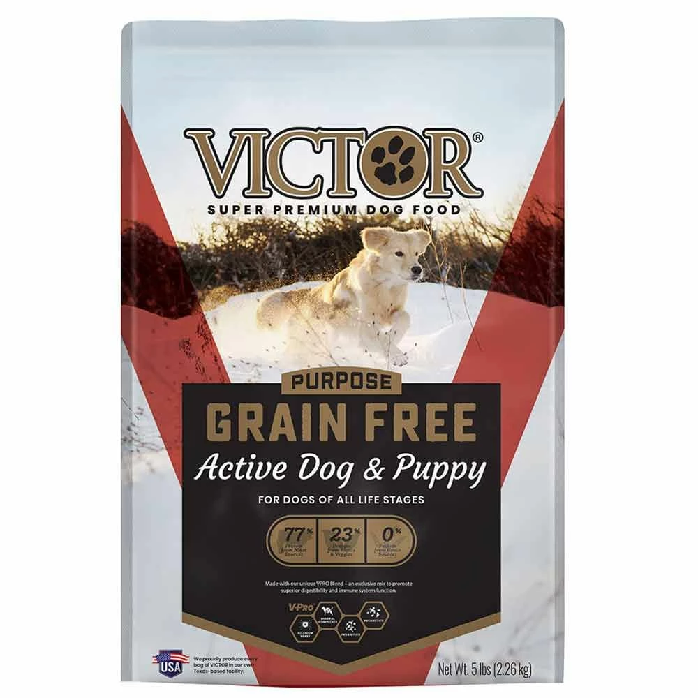 VICTOR Grain-Free Active Dog & Puppy is an excellent choice for growing puppies, pregnant and lactating females, and dogs with high physical demands. This multi-protein, nutrient-dense recipe is specially formulated for dogs with allergies to certain proteins or grains. VICTOR Grain-Free Active Dog & Puppy for Dogs is formulated to meet the nutritional levels established by the AAFCO Dog Food Nutrient Profiles for All Life Stages, including growth of large size dogs (70 lb. or more as an adult).#html-body [data-pb-style="621604465D3EC"]{justify-content: flex-start; display: flex; flex-direction: column; background-position: left top; background-size: cover; background-repeat: no-repeat; background-attachment: scroll; border-style: none; border-width: 1px; border-radius: 0px; margin: 0px 0px 10px; padding: 10px;}#html-body [data-pb-style="621604465D40E"]{border-style: none; border-width: 1px; border-radius: 0px; margin: 0px; padding: 0px;}