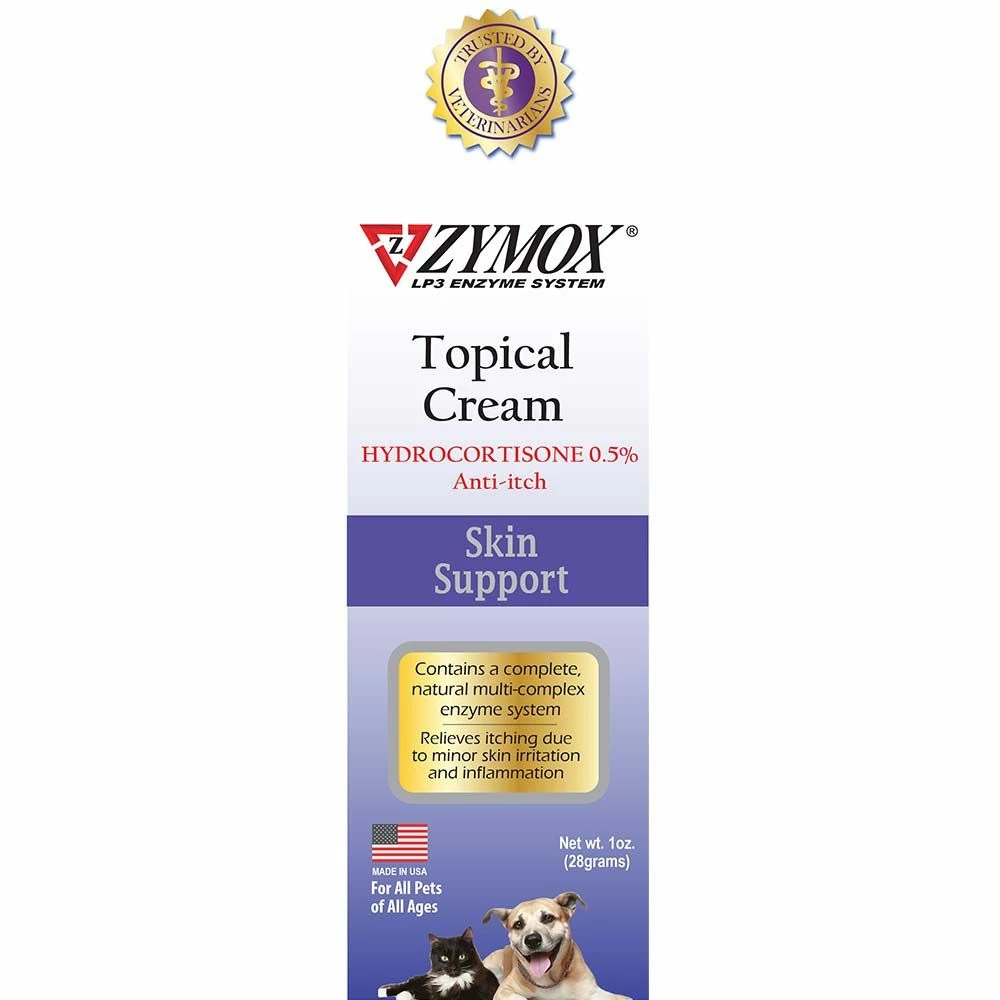 ZYMOX® Topical Cream with 0.5% Hydrocortisone Promotes healthy skin and provides relief from itching and hot spots caused by inflammation, dermatitis, and other minor skin irritations. ZYMOX® Topical Cream contains the patented LP3 Enzyme System which blends a concentrated combination of protein, enzymes plus skin soothing aloe vera and 0.5% hydrocortisone for itch relief. The Cream features a catheter tip for direct application. Ideal for areas around the face, paws, and body folds.