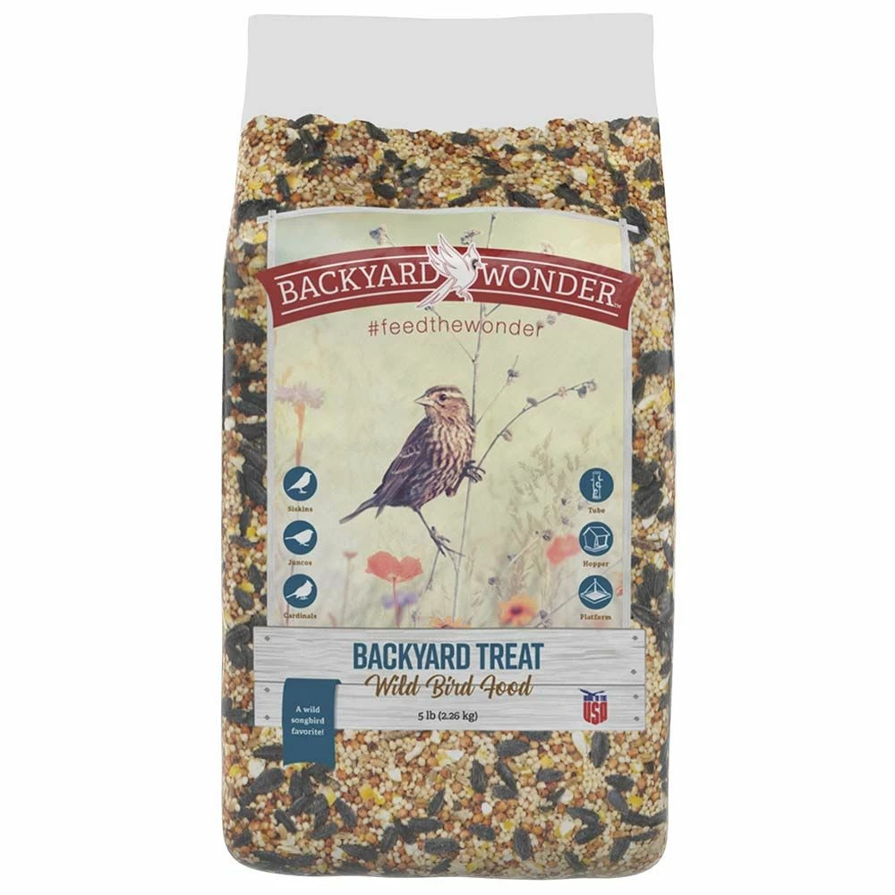 Backyard Wonder® Backyard Treat Wild Bird Food will fill your backyard with the sounds of sweet singing. Backyard Wonder™ Backyard Treats is a versatile blend that attracts birds like siskins, juncos, and cardinals. It attracts favorite backyard song birds and is great for year round feeding. Place the feeder near trees or shrubs. Offer water for birds to drink. And its all made with care right here in the USA. #html-body [data-pb-style="62160447902AB"]{justify-content: flex-start; display: flex; flex-direction: column; background-position: left top; background-size: cover; background-repeat: no-repeat; background-attachment: scroll; border-style: none; border-width: 1px; border-radius: 0px; margin: 0px 0px 10px; padding: 10px;}#html-body [data-pb-style="62160447902D3"]{border-style: none; border-width: 1px; border-radius: 0px; margin: 0px; padding: 0px;}