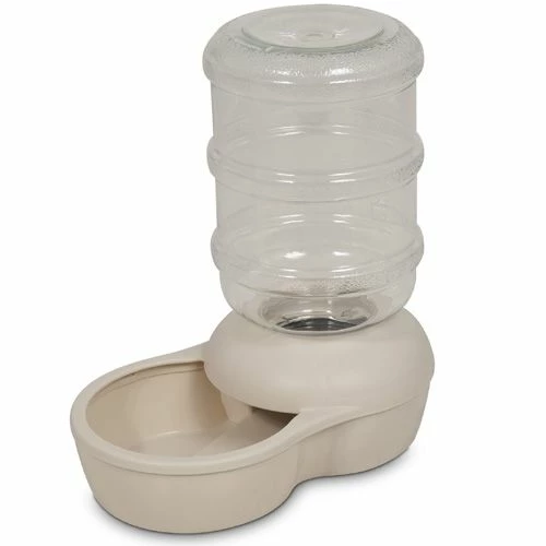 Aspen Pet Le Bistro® Pet Waterer 1 Gal. is automatic watering with flair! tough plastic base holds a reservoir filled with refreshing water that self-fills the base when the water level gets low. Made with Microban® antimicrobial protection to fight against the growth of stain and odor-causing bacteria, mold and mildew.