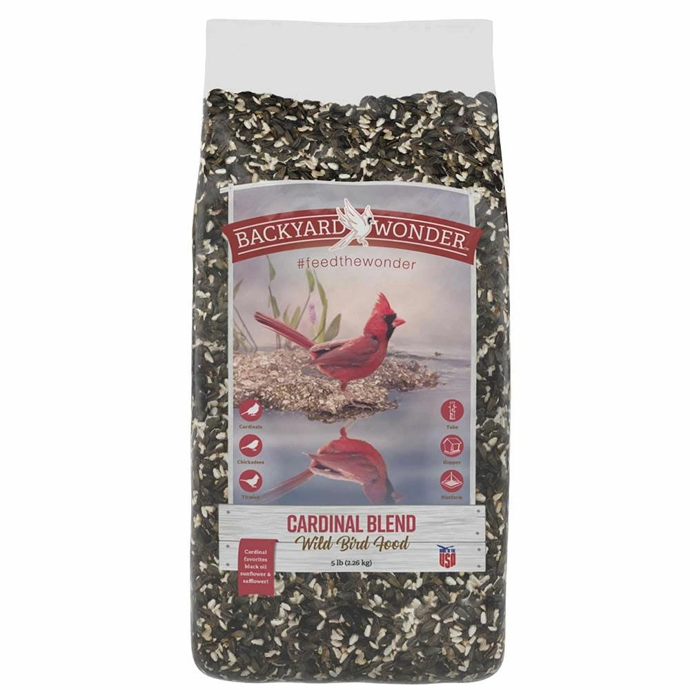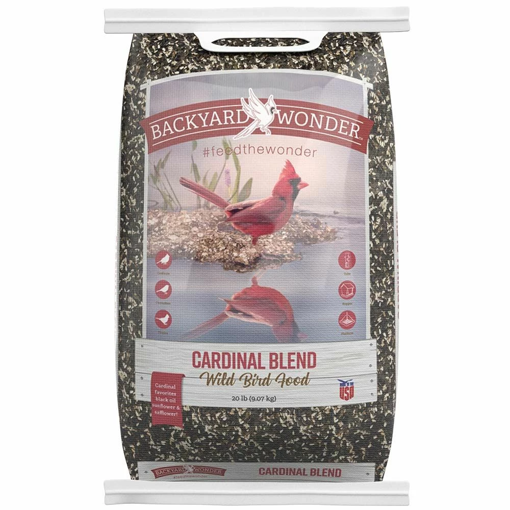 Backyard Wonder® Cardinal Blend Wild Bird Food is specially made to attract the coveted cardinal to your feeders. Packed with black oil sunflower and safflower, it's sure to satisfy. Oil seeds are a cardinal favorite. This blend is great for year round feeding. Place the feeder near trees or shrubs. Offer water for birds to drink. And it's all made with care right here in the USA.#html-body [data-pb-style="62160448CAD2E"]{justify-content: flex-start; display: flex; flex-direction: column; background-position: left top; background-size: cover; background-repeat: no-repeat; background-attachment: scroll; border-style: none; border-width: 1px; border-radius: 0px; margin: 0px 0px 10px; padding: 10px;}#html-body [data-pb-style="62160448CAD55"]{border-style: none; border-width: 1px; border-radius: 0px; margin: 0px; padding: 0px;}