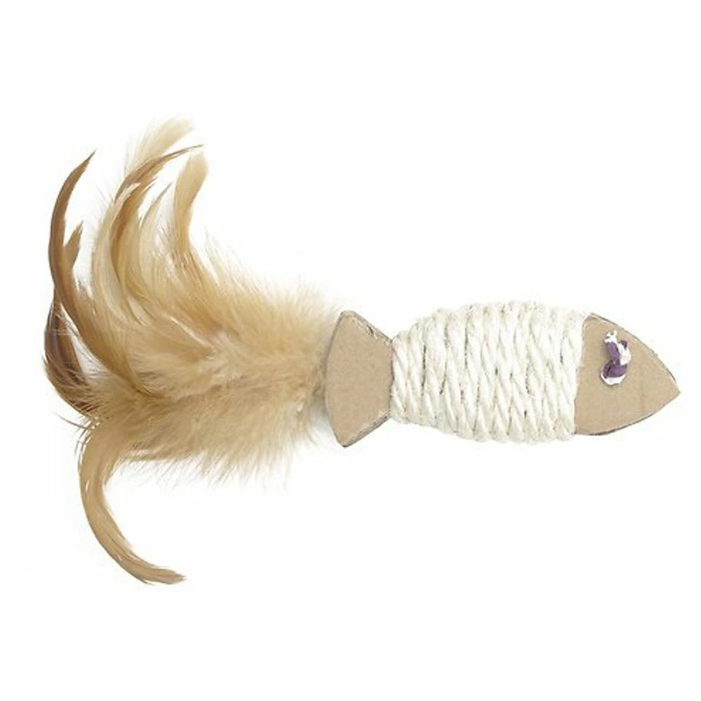 Made of all-natural materials, this eco-friendly cat toy by Catit is designed to engage your cat's natural instincts to chase, pounce and play. The fish-shaped toy is made of tightly-wound sea grass, which is excellent for biting and clawing. It also has a feathered tail for extra amusement.