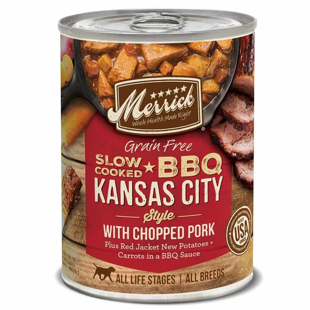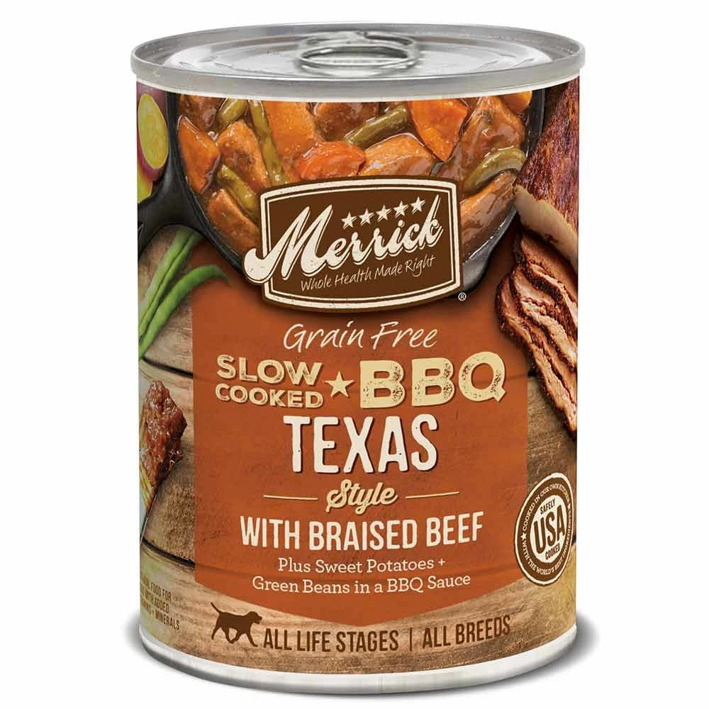 Merrick Grain Free Slow Cooked BBQ Wet Dog Food is specifically formulated to provide your pet with the best, most nutritious food they can get. These paw-licking BBQ recipes are inspired by Texas, Kentucky, St. Louis and Kansas City BBQ flavors. Deboned meat is the first ingredient. This high quality protein helps build and maintain healthy muscle tissue. It contains real whole vegetables, and savory broth adds flavor and moisture to your dog's diet. All Merrick recipes are crafted in our Hereford, TX kitchen and cooked in the USA, in facilities that uphold strict FDA guidelines.#html-body [data-pb-style="6216044BD93B3"]{justify-content: flex-start; display: flex; flex-direction: column; background-position: left top; background-size: cover; background-repeat: no-repeat; background-attachment: scroll; border-style: none; border-width: 1px; border-radius: 0px; margin: 0px 0px 10px; padding: 10px;}#html-body [data-pb-style="6216044BD93D4"]{border-style: none; border-width: 1px; border-radius: 0px; margin: 0px; padding: 0px;}