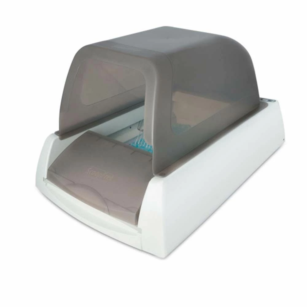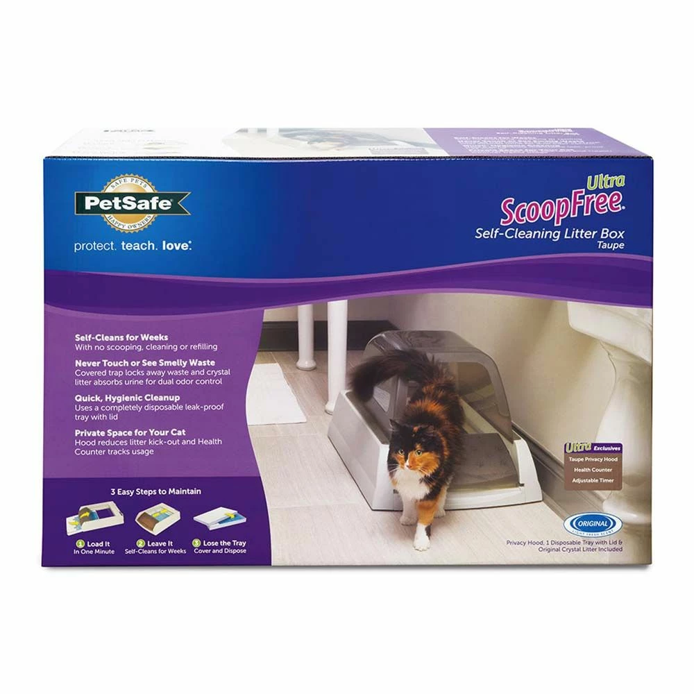 Strike scooping the litter box off your to-do list. With the ScoopFree® Ultra Self-Cleaning Litter Box, there’s no scooping, cleaning or refilling your cat’s litter box for weeks. It uses crystal litter that provides 5 times better odor control than traditional clumping litter by absorbing urine and dehydrating solid waste. This low-tracking litter also helps keep your floors clean because it is 99% dust free and doesn’t stick to your cat’s paws. Safety sensors ensure that the scooping cycle only occurs when your cat is out of box. It uses disposable trays that have a plastic lining to help protect against leaking, and each tray comes with a lid for quick and easy disposal. There’s even a health counter that tracks how many times your furry feline uses the box, which is a convenient way to detect early signs of a health issue, and the included privacy cover gives your cat a secluded bathroom. PetSafe® brand is here to help you and your pet live happy together®.